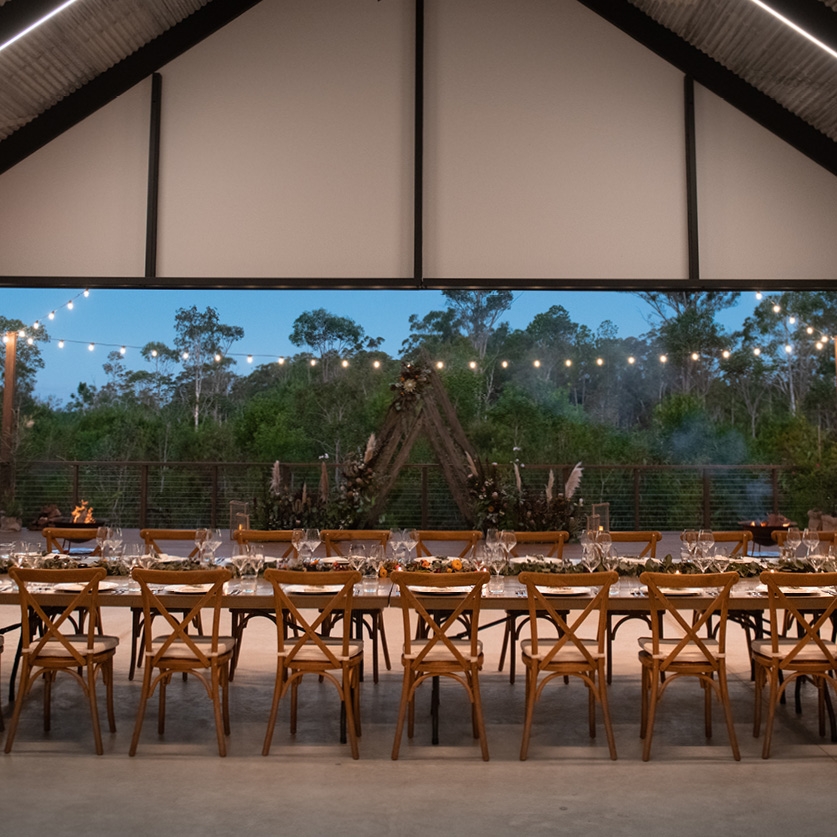 Tie the knot at the Ironbark Paddock, the exclusive event space with a soaring ceiling and timber deck that overlooks the beautiful surrounding bushland, teeming with native wildlife. Then continue the celebrations at Warrior Restaurant & Bar, an exquisite fine-dining restaurant located at The Crocodile Hunter Lodge.This could be a morning ceremony with a luncheon reception or an afternoon ceremony followed by an intimate dinner. Included in the packages are tealight candles and fresh native greenery arrangements for the table. This wedding ceremony package must be booked in conjunction with an intimate wedding reception package at Warrior Restaurant & Bar’s Private Dining Room. Wedding packages are based on a maximum of 24 guests for a seated event and 30 guests cocktail style.